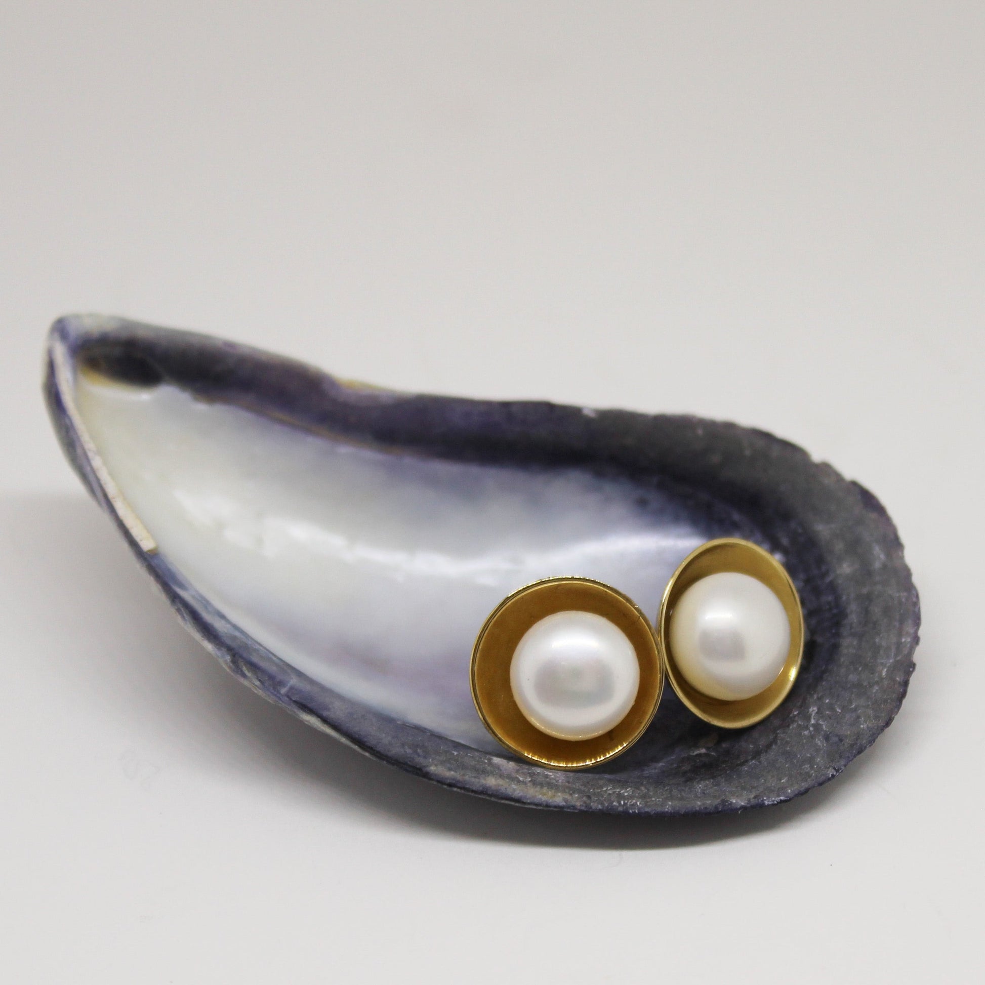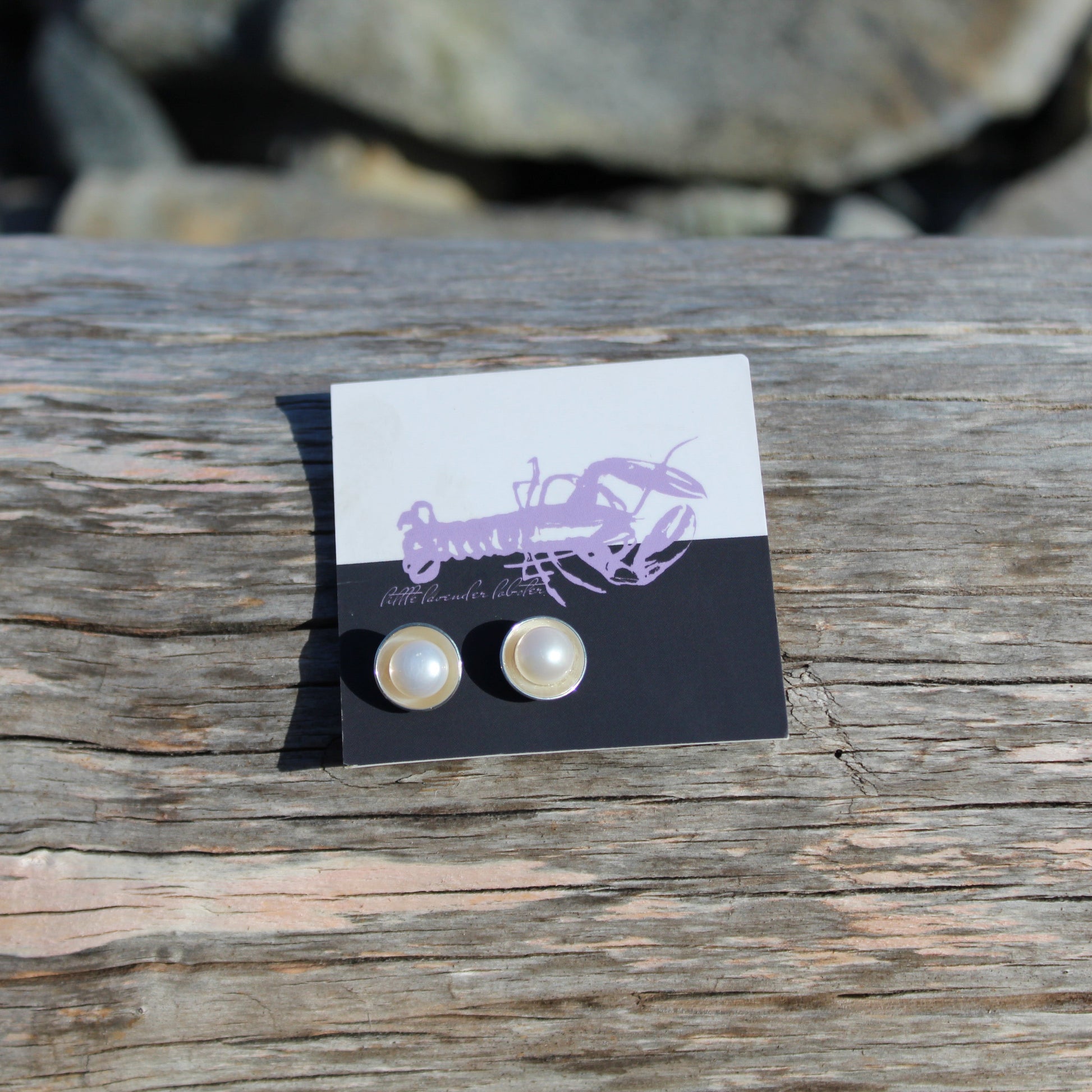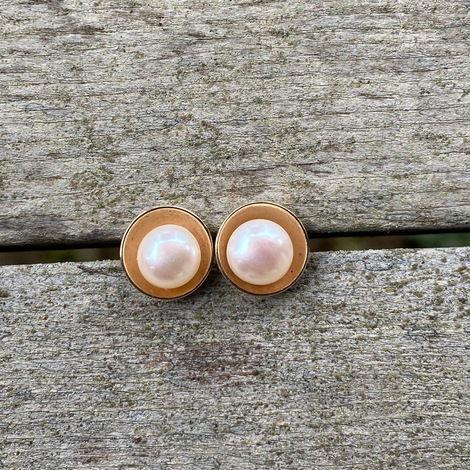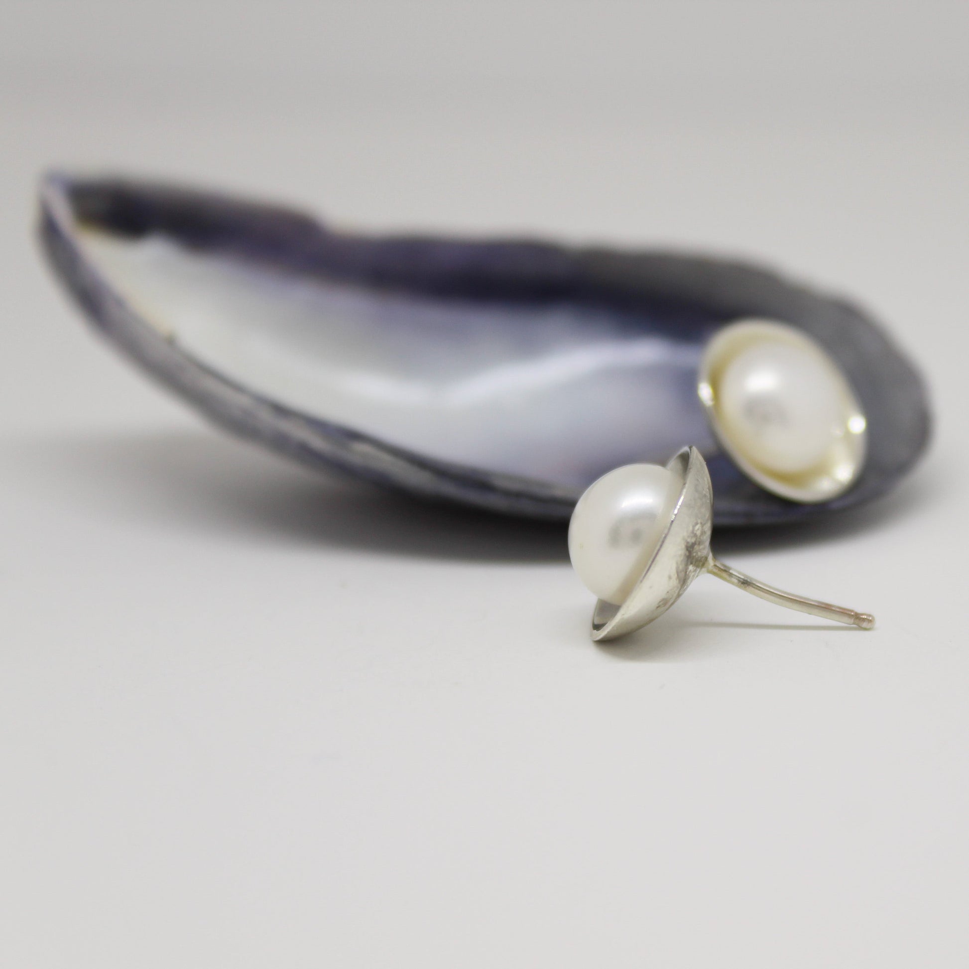 **Each pair of earrings is handmade. Items are hand cut, soldered, shaped, sanded, pearls are post set and earrings polished all by hand. Because of the nature of pearls and that each setting is handmade each earring may vary slightly.**